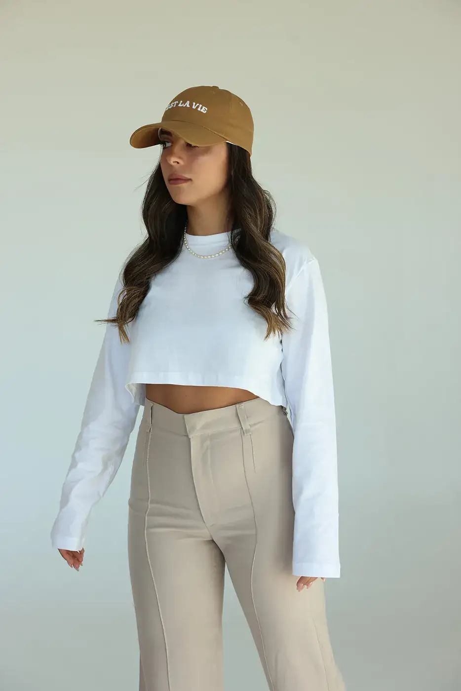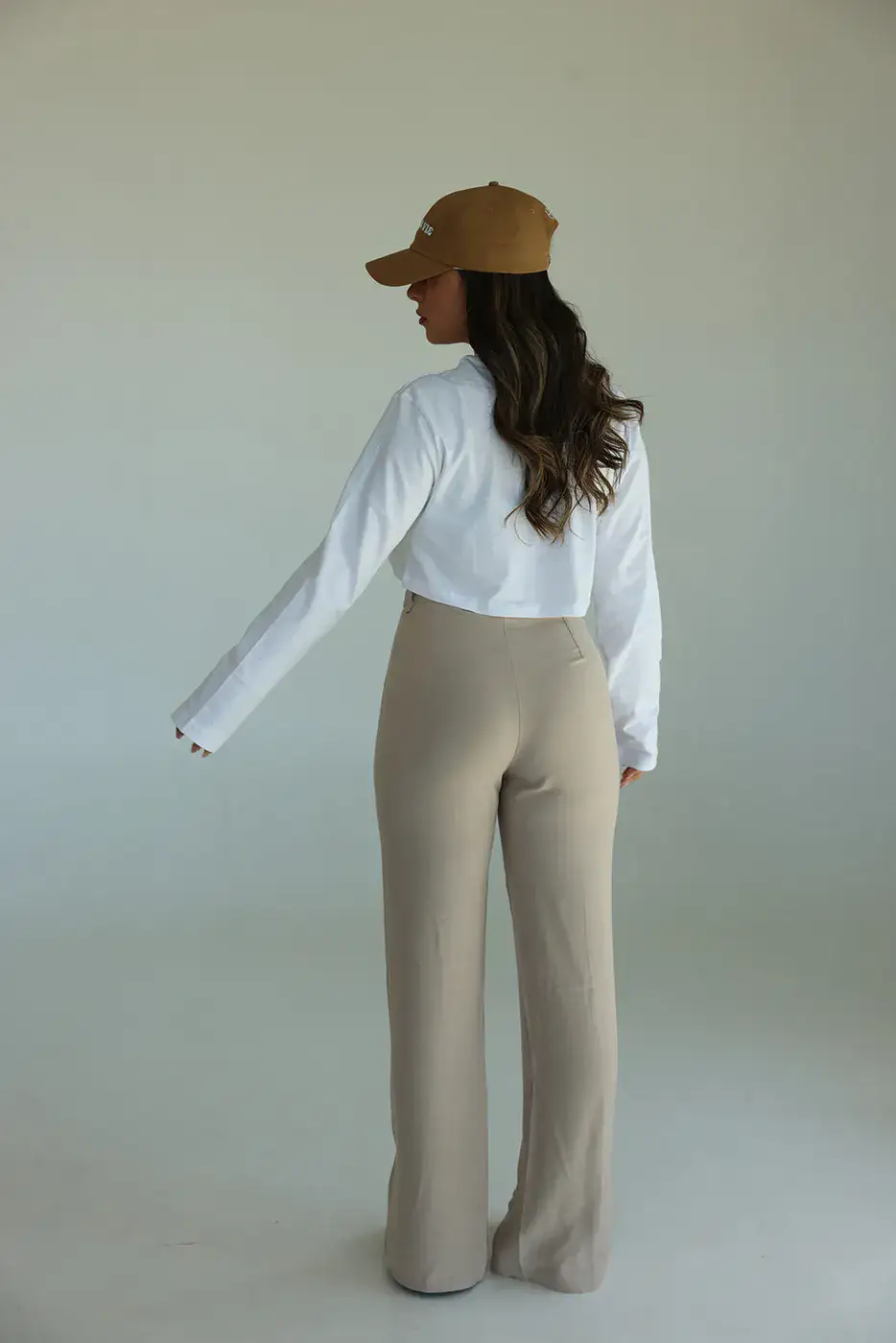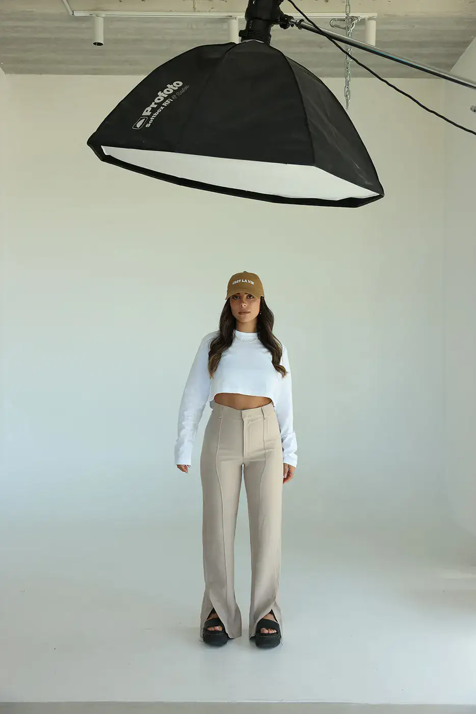 מכנס ארוך בגזרה צמודה ומחויטת עם שסעים בצידי המכנסיים